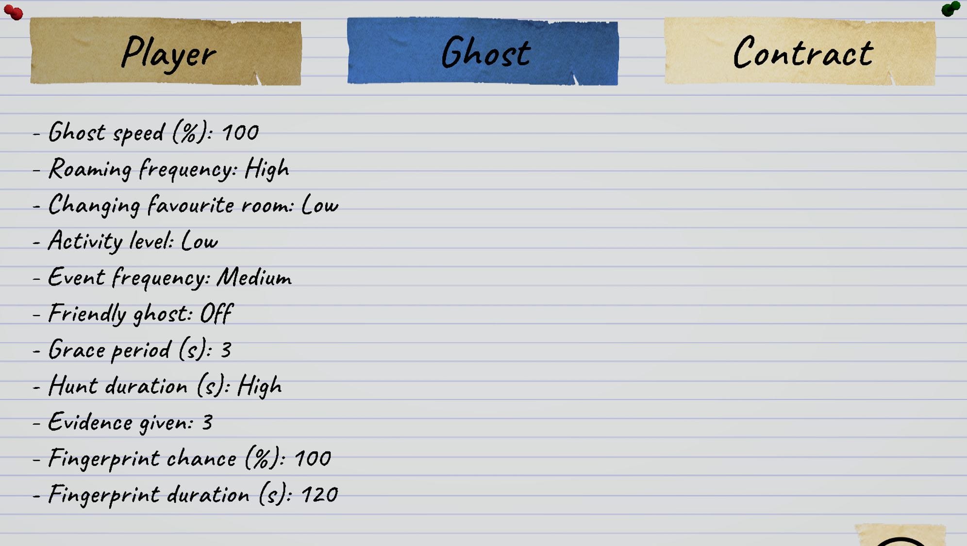 The ghost has a high frequency of wandering around, which means you are rather unlikely to encounter it directly in its haunted room, making the process of finding evidence somewhat more complicated.